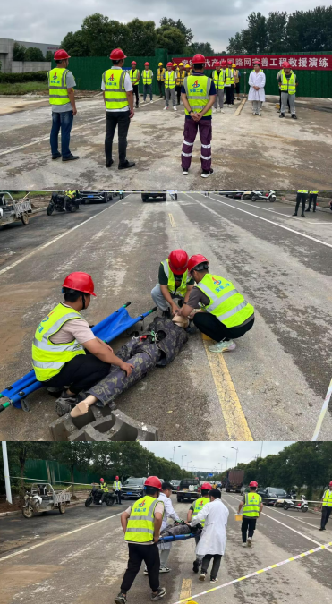 按照施工项目安全生产应急救援演练的要求,为提高一线作业人员应急救援能力,掌握安全应急救援知识,6月26日,第六公司宿徐现代产业园市政项目组织开展了机械伤害应急救援演练活动。