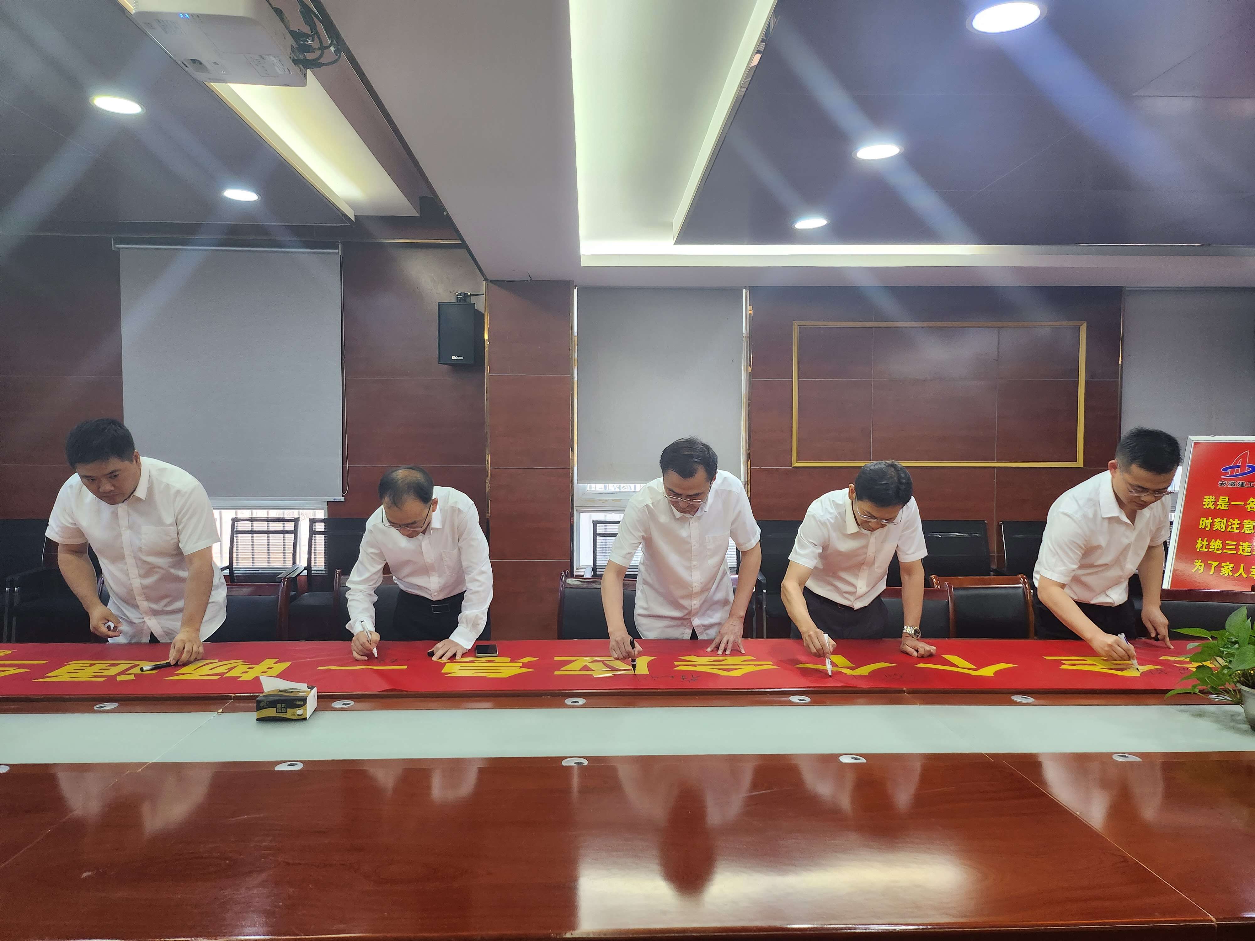 “我是一名安全建工人,我郑重宣誓:时刻注意安全,遵守安全法规;履行安全职责,提高安全技能;杜绝三违现象,保证四不伤害;强化红线意识,促进安全发展;为了家人幸福、企业发展,誓做建工安全人!”伴随着一阵阵响亮的宣誓声,联合签名、观看安全生产月主题宣传片及公益广告等,第一分公司2024年“安全生产月”正式拉开帷幕。