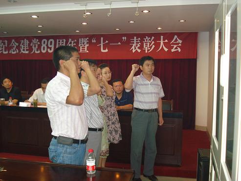 公司总经理费瑞林宣读了2010年先进基层党组织、优秀共产党员、优秀党务工作者和优秀共产党员示范岗的决定?;嵘?,公司党委表彰了离退休党支部、机关第一党支部、机械公司党支部3个先进基层党组织、蒯家江等21名优秀共产党员、章征俊等8名优秀党务工作者和刘国良等6名优秀共产党员示范岗。并颁发了奖牌和荣誉证书。4名新党员向鲜红的党旗进行了庄严的宣誓。