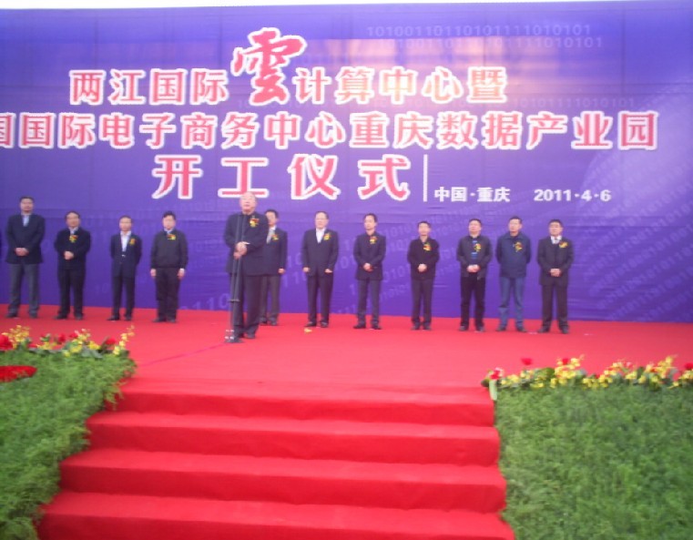 4月6日上午,重庆市两江新区隆重举行两江国际云计算中心暨中国国际电子商务中心重庆数据产业园开工仪式,重庆市委副书记、市长黄奇帆以及重庆市有关领导,商务部领导,安徽建工集团有限公司董事长、总经理胡运成出席了开工仪式,随同胡总参加开工仪式的还有安徽建工集团副总经理王元曦,国内公司总经理陈传文,集团董事、安徽二建总经理费瑞林,副总经理刘国良等。