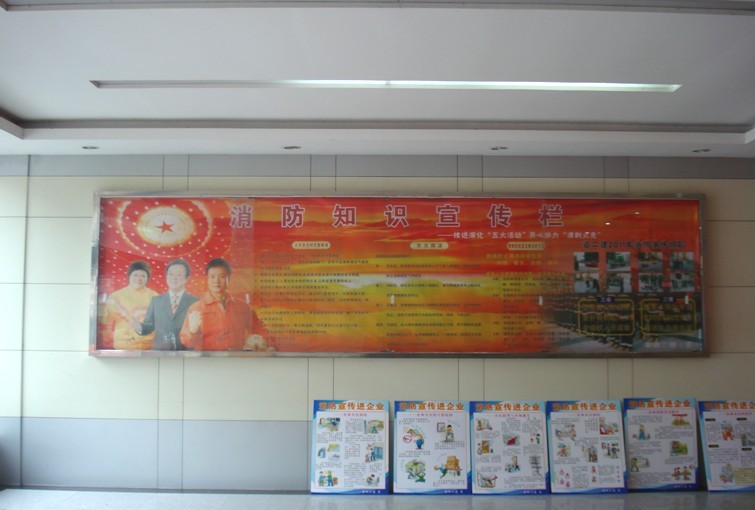 图为公司办公楼宣传栏中的消防知识内容