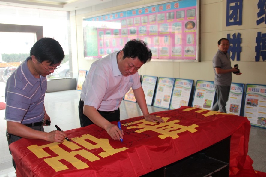今年“安全生产月”的主题是“强化安全基础、推动安全发展”。在活动现场,公司机关全体员工在印有主题的横幅上签名,也拉开了安全生产月各项活动的序幕。