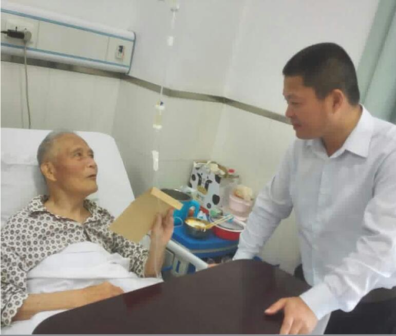 “七一”前夕,公司党委书记刘贤奇同志专程前往市二院看望慰问因病住院的离休干部岳林同志。刘书记紧紧握着岳老的双手向有着77年党龄的岳老表达了公司党委及公司领导班子的亲切问候,细声叮嘱他要保重身体,并送上了慰问金。