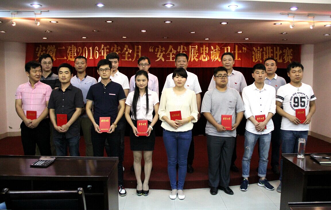 6月28日下午,第十五个安全活动月中,安徽二建公司工会与安全管理部联合组织开展“安全发展忠诚卫士”演讲比赛活动,来自公司机关及基层单位12名选手参加比赛,他们通过身边安全生产管理细微小事、安全事故发生案例等一个个生动的演讲主题,唤醒大家牢记安全为天意识,珍爱生命,强化安全管理工作的理念。最后经过评委评分,公司机关张琪获得一等奖,海外发展公司王南岳、后勤综合服务部叶锡峰获二等奖,三分公司刘振中、一分公司徐欣琪、一分公司李晓岗获三等奖,邵进等6人获优秀奖。