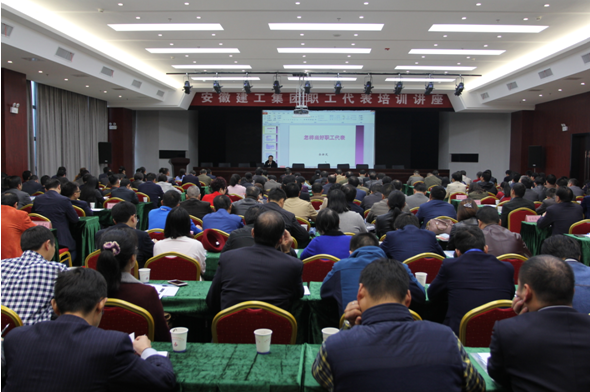 为提高集团公司职工代表参政议政的素质和能力,2016年11月7日下午,公司组织14名职工代表参加集团公司在安建大厦三楼会议室举办的首届职工代表培训讲座,讲座特邀省总工会民主管理部部长余新茂授课。集团工会主席徐晓光、副主席吴晓伍、女工主任胡爱红等集团机关及各子公司工会主席、集团职工代表、各基层工会主席等200余人参加了此次培训讲座。