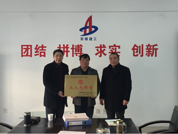随后,李主席代表安徽二建工会授予海外公司太和标准厂房项目部“工人先锋号”称号。