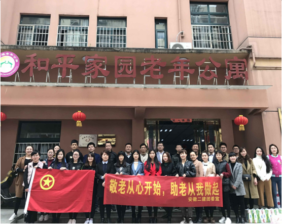 为了弘扬中华民族敬老爱老的传统美德,唤起社会对老人的尊敬关爱意识,安徽二建团委组织开展“敬老从心开始,爱老从我做起”主题活动。