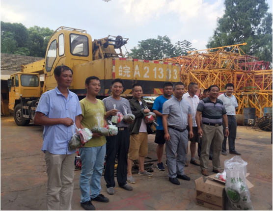 分公司经理周俊、党支部书记葛德云把防暑降温用品发放到每位职工手中,并一再叮嘱员工在高温作业时一定要劳逸结合,注意休息,做好高温防护。