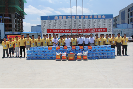 7月20日上午,集团公司工会主席徐晓光一行深入太和县经开区现代医药产业及发艺产业基础配套工程PPP项目,慰问在酷暑中坚守岗位、辛勤劳动的一线建设者。安徽二建党委书记刘贤奇、总经理助理蒯家江、安建投资公司党总支书记余志刚、副总经理朱友良陪同慰问。
