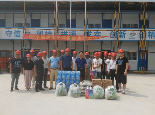 7月17日-7月27日,安徽二建公司总经理许业勇、党委书记刘贤奇等领导班子成员顶高温、冒酷暑,分别对所属23个自营项目部开展“送清凉”慰问活动。为在高温下仍坚守工作岗位的一线人员送去了绿豆、白糖、茶叶、香皂、驱蚊花露水、风油精、人丹、藿香正气丸等防暑降温物品,感谢他们战高温,付出辛勤汗水确保公司生产稳定发展。
