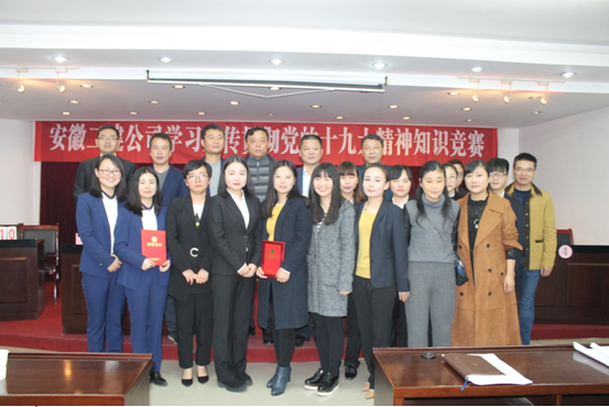 经过三轮激烈的比赛,最终由一分公司第一代表队获得本次学习十九大精神知识竞赛的一等奖;机关第二代表队、后勤综合服务部代表队分获二等奖;安装公司代表队、二分公司代表队以及四分公司代表队分获三等奖。