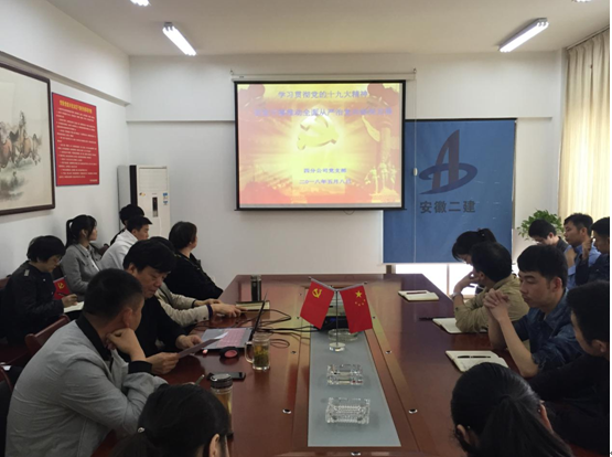 5月8日,安徽二建四分公司开展支部书记讲党课活动,支部书记董建民结合分公司实际工作,与参会人员分享了学习贯彻党的十九大精神的心得体会,并向大家传达了坚定不移推动全面从严治党向纵深发展的有关精神,分公司机关全体人员参加学习交流。