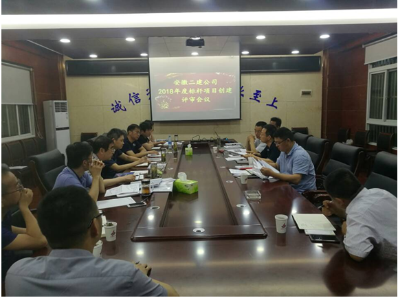 为推进公司内部标杆项目创建管理工作,5月18日下午,安徽二建公司召开了2018年度标杆项目创建方案评审会议,会议由工程管理部主任崔书斌主持,副总经理叶和永、评审组成员及各创建项目主要负责人参加会议。