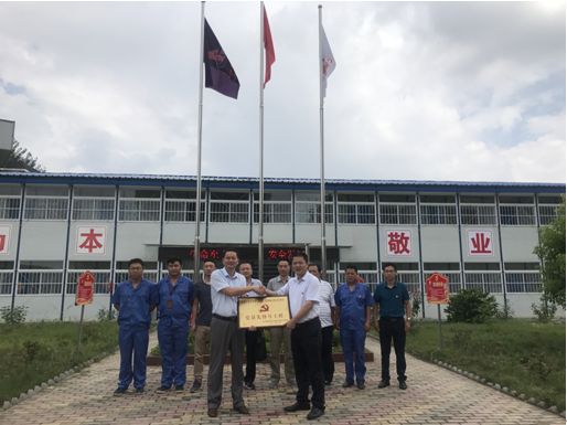 8月22日上午,公司党委书记刘贤奇在党委工作部主任施用宏和二分公司支部书记黄业云的陪同下,代表公司党委授予阜阳项目联合党支部“党员先锋号”荣誉称号。