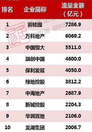 克尔瑞的数据,碧桂园7287亿元蝉联第一,万科6069亿元重回行业第二,恒大5511亿元的位居第三。