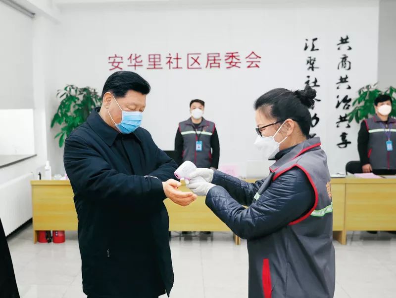 2月10日,中共中央总书记、国家主席、中央军委主席习近平在北京调研指导新冠肺炎疫情防控工作。这是习近平来到朝阳区安贞街道安华里社区,了解基层一线疫情联防联控情况。新华社记者 鞠鹏 摄