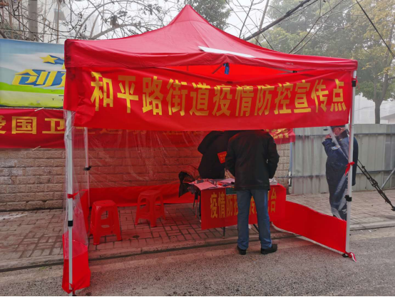 所有小区及道路出入口设置疫情防控宣传登记台,悬挂宣传条幅,张贴《新型冠状病毒感染的肺炎疫情防控应急指挥部通告》,放置有供居民自行取阅的疫情防控知识宣传页。每天有声播放防控通告和防控知识,提醒广大民众科学做好个人卫生防护,非常时期减少外出。对进出居民做好信息登记并发放临时出入证,进行防控措施和防控知识再提醒,做到相关政府通告内容家喻户晓,实现抗疫宣传全覆盖。