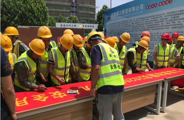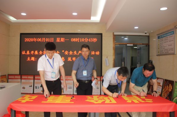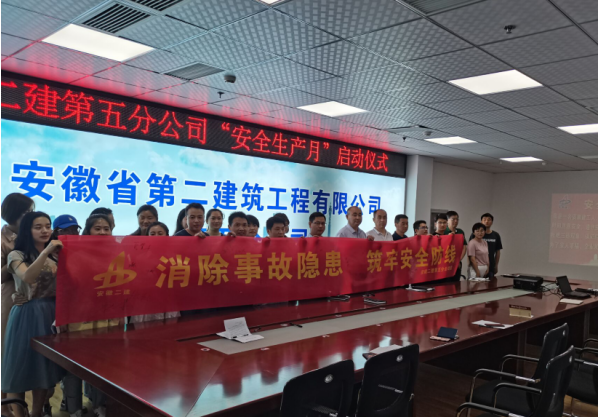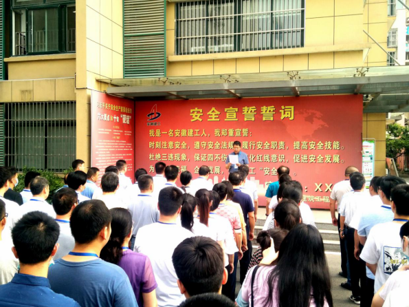 6月1日上午,安徽二建公司举行了“安全生产月”启动仪式,公司领导、机关全体职工100余人参加。总经理陆勤斌作了讲话,指出安全生产工作的重要性和“安全生产月”活动的意义,宣布2020年“安全生产月”活动正式启动。全体职工在安全总监曹建的带领下进行了安全宣誓,随后,大家在印有“安全生产月”主题“消除事故隐患,筑牢安全防线”的横幅上签名。公司所属各单位、各项目部同步开展了启动仪式。
