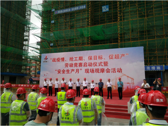 6月18日,安徽二建公司在淮北国金华府(紫麟苑)项目举行“战疫情、抢工期、保目标、促超产”劳动竞赛启动仪式及安全生产月系列宣传教育活动。公司领导,工会、党委工作部、工程管理部、安全管理部、技术质量部部门负责人,所属各单位主要领导、分管安全副经理、安全科长,项目经理及安管人员共二百余人参加,淮北市监管局及建设单位相关领导应邀参加了活动。