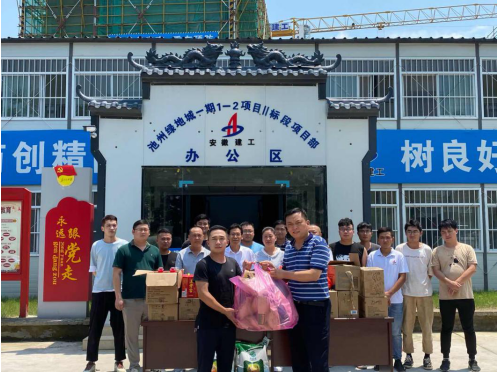 仇多维一行为一线职工送上绿豆、人丹、茶叶、肥皂、洗手液等防暑降温及消毒物品,叮嘱项目经理在做好疫情防控常态化工作的同时,合理安排高温工作时间,克服恶劣天气影响,加强防暑降温知识的宣传教育,确保夏季施工安全。