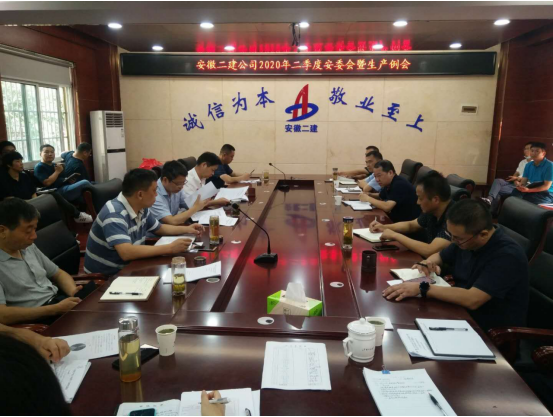 近日,安徽二建公司召开二季度安委会暨生产例会。公司安委会全体成员及机关各部门负责人参加会议。副总经理叶和永主持会议。