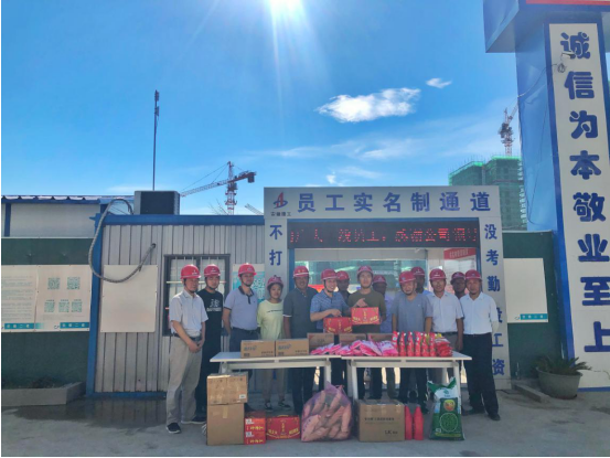为做好高温季节防暑降温工作,切实维护职工安全健康权益,8月3日上午,公司党委委员、总工程师邱立龙、工会女工主任王俊一行赴合肥文一·锦门云栖新语B标段项目开展2020夏日“送清凉”活动,为坚守在一线工作岗位的职工送去防暑降温物品,给项目带来一缕清凉。