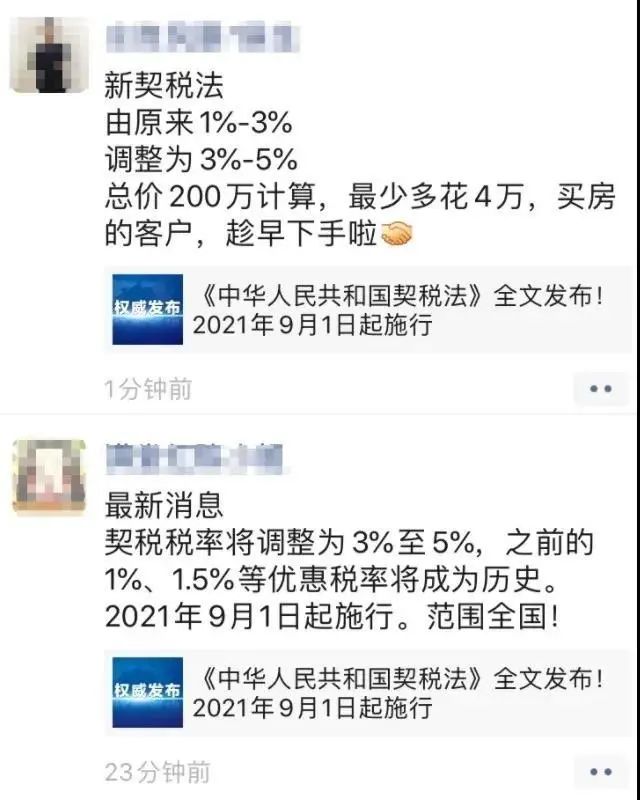 一时间“房价要涨,契税要涨,买房要趁早”的消息在朋友圈广泛流传,甚至有一部分房产中介开始借此炒作买房恐慌。