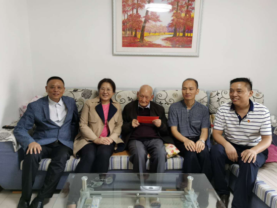 9月22日上午,时逢国庆、中秋双节到来之际,省医保局社会保障处主任李永中,省卫生健康委离审办主任李继红,安徽建工控股工会副主席、机关党委书记、老干处处长李世龙,安徽二建党委副书记、纪委书记仇多维等一行,来到抗战老战士、老党员、安徽二建百岁离休老干部李辉老人家中进行慰问。