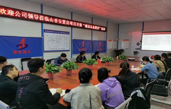 11月18日下午,公司党委副书记、纪委书记仇多维带领党工部、工会、纪检监察室机关人员赴蚌埠山香安置房EPC项目开展廉洁从业教育。