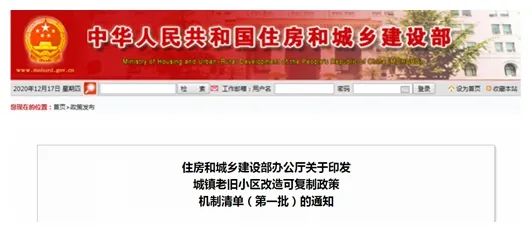 日前,住房和城乡建设部印发城镇老旧小区改造可复制政策机制清单(第一批)。