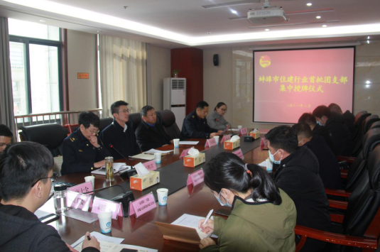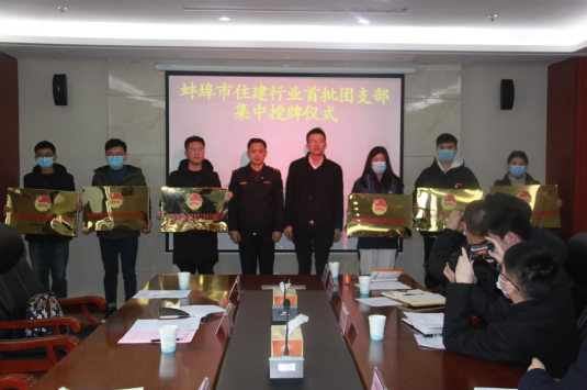 2021年2月2日上午,蚌埠市住房城乡建设行业首批团支部集中授牌仪式在蚌埠市住建局举行?;嵋橛砂霾菏凶〗ň指毕丶读斓纪趺鞣贾鞒?。蚌埠市住建局党委书记、局长王家渠,党委委员、副局长汪文学;蚌埠市团市委党组副书记韩见,组织部部长、少年部部长雷蕾;蚌埠市建筑管理处党委书记、主任唐士全,团委书记韩道斌;蚌埠市住建系统团工委书记邹振飞同志出席授牌仪式。安徽二建公司蚌埠溪湖湖山春晓、山香安置房项目参加市住建行业首批团支部集中授牌。