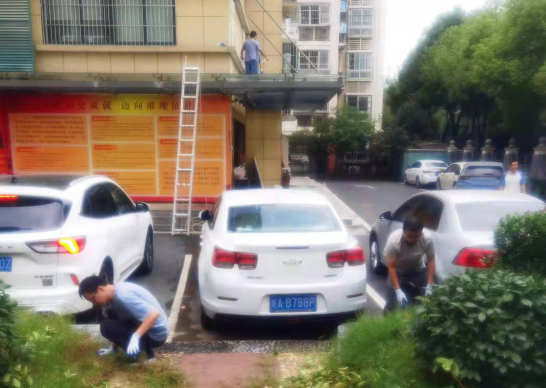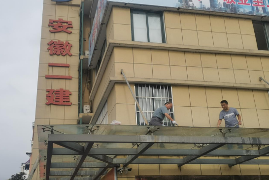 为迎接中共安徽省第二建筑工程有限公司首届党代会胜利召开,9月14日上午,后勤综合服务部党支部组织在岗党员、干部、入党积极分子共10人,开展清扫公司机关大院内的卫生死角、花坛内杂草以及大门门头的钢化玻璃。