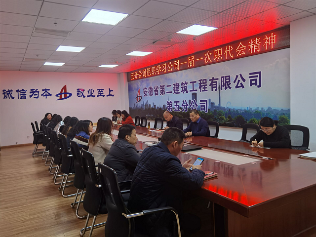 2月28日,安徽二建公司一届一次职工代表大会胜利召开?;嵋榻崾?,第五分公司积极行动,迅速掀起贯彻学习职代会精神热潮。