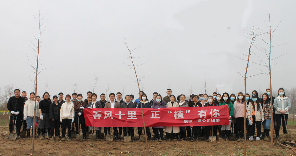 阳春三月,草长莺飞。学雷锋活动月遇上全国第44个植树节,正是补植复绿的好时候。3月18日,安徽二建公司团委组织40余名青年志愿者在滨湖湿地公园开展“春风十里 正‘植’有你”雷锋月义务植树活动。公司党委副书记、工会主席王军、财务总监王干出席活动。
