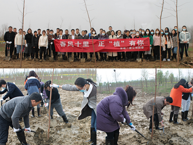 3月18日,安徽二建公司团委组织40余名青年志愿者在滨湖湿地公园开展“春风十里 正‘植’有你”雷锋月义务植树活动。公司党委副书记、工会主席王军、财务总监王干出席活动。