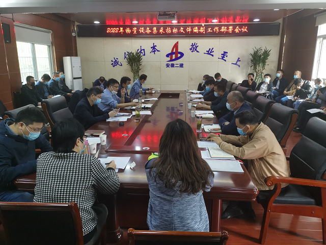 4月19日上午,安徽二建公司在一楼会议室召开2022年物资设备集采工作部署会议。公司总经理李建成、副总经理叶和永以及相关职能部门负责人、所属各单位行政负责人、生产副经理及相关科室负责人参加会议,会议由公司副总经理、总工程师费勤波主持。