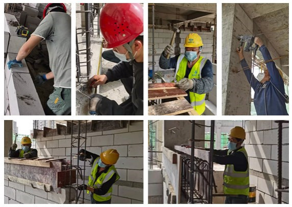 项目部有序组织管理人员和现场工人投入到施工生产中,进行墙体砌筑,构造柱、反坎、板带过梁等二次结构施工,同时安排专人进行屋面构架梁板钢筋绑扎,材料的归整及现场清理等工作,各工种紧密配合,正在有条不紊的快速推进,安全质量处于可控状态。