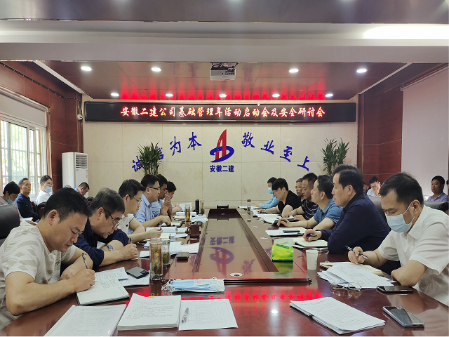 5月7日上午,安徽二建公司在一楼会议室召开了安全工作学习研讨会。总经理李建成出席会议并讲话,副总经理、总工程师费勤波,财务总监王干参加会议,副总经理叶和永主持会议。