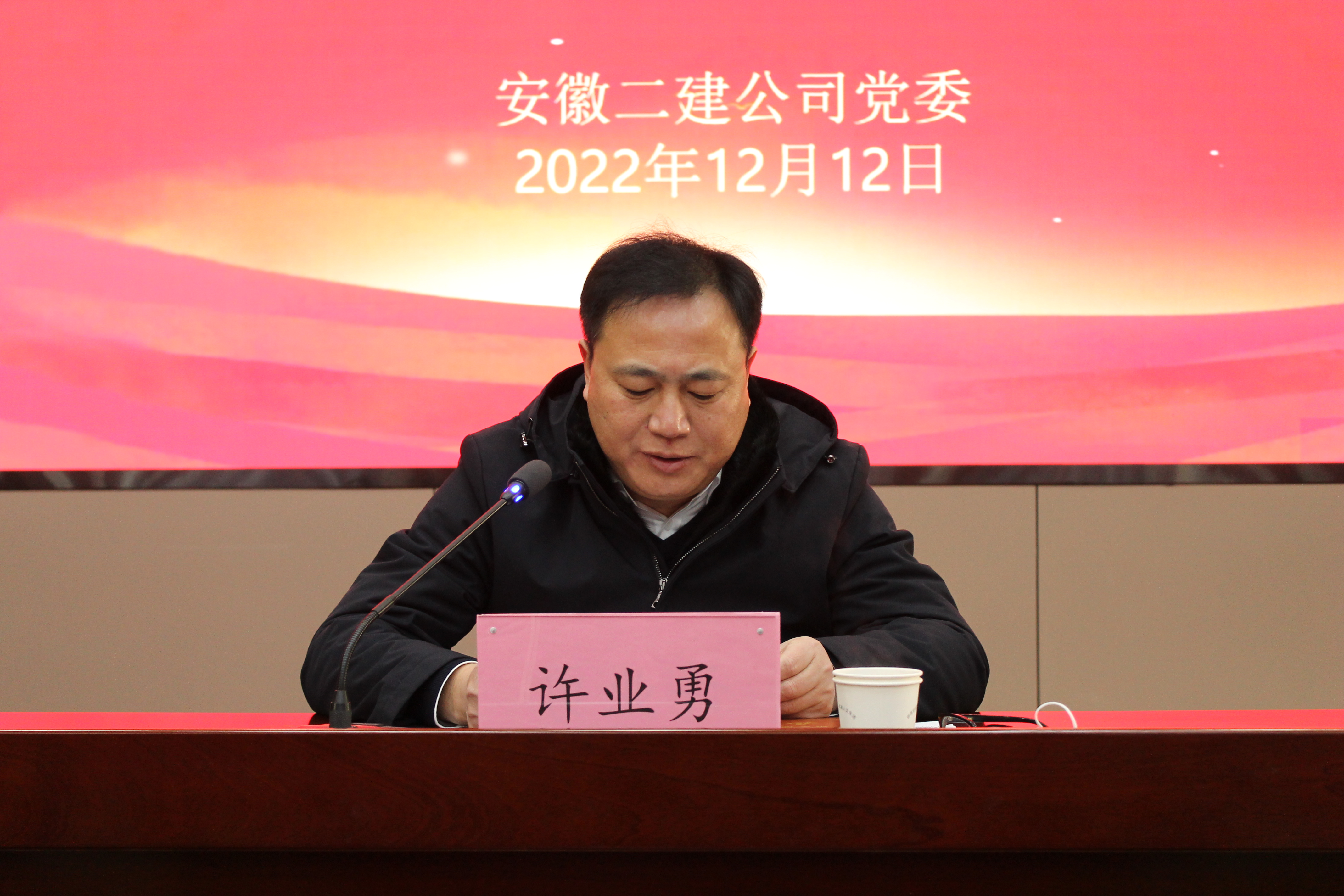 许业勇指出,举办此次培训班,旨在全面贯彻落实党的二十大精神,扎实推动高质量发展,着力增强中层管理人员及年轻干部履职能力,特别是增强工作的积极性、主动性、创造性,以及办事效率和解决问题的能力,激发广大干部干事创业、创先争优的热情,切实增强政治判断力、政治领悟力、政治执行力,推动公司各项工作再上新台阶,为安徽二建高质量发展贡献更大力量。他强调,一是筑牢理想信念根基。要认真学习领悟贯彻党的二十大精神,要在深学细悟、真懂真信中汲取力量,不断提高化解矛盾、破解难题的能力,努力把学习成果转化为推动公司发展的强劲动力。二是强化贯彻落实,以实干实绩检验培训成效。统一思想、凝聚共识,打好年末“收官战”。三是发挥表率作用,做到融汇贯通。要守土有责、守土尽责,特别是面对困难大、任务重的工作时,要迎难而上,挺身而出,充分发挥模范带头作用。